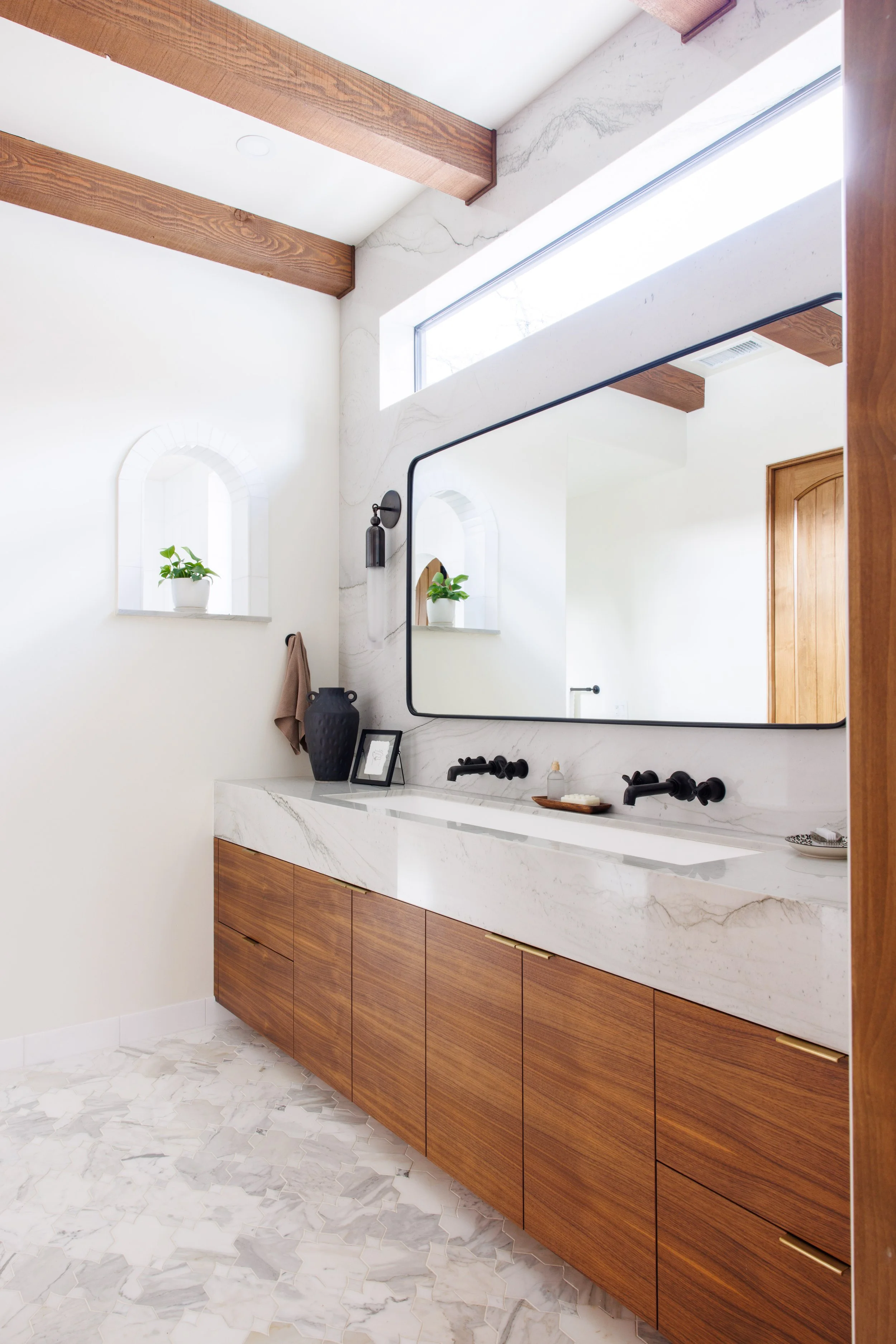 Located in Northern California, next to a gorgeous golf course. Our team created a calming, luxury primary bathroom retreat for one of our most favorite clients.