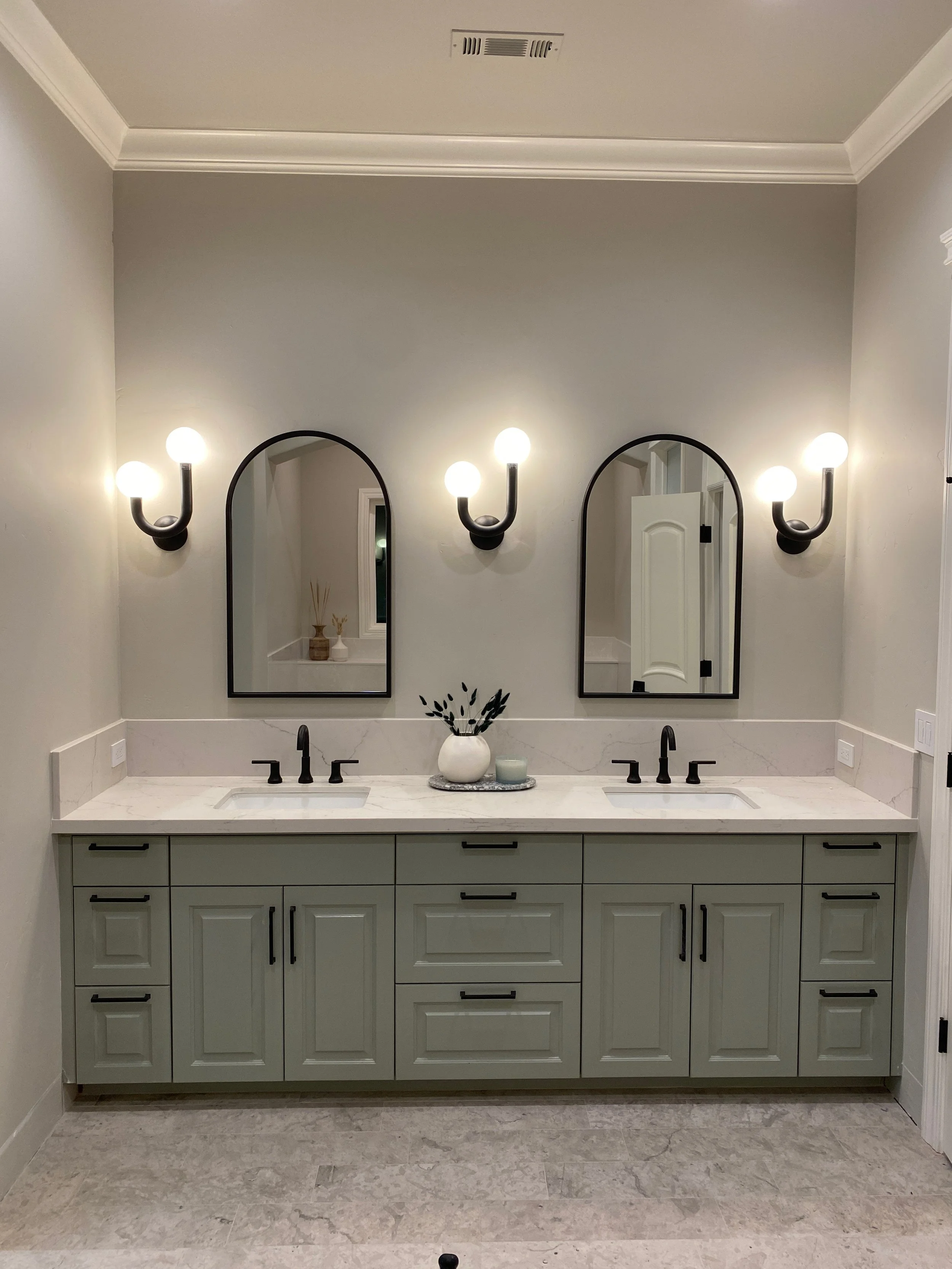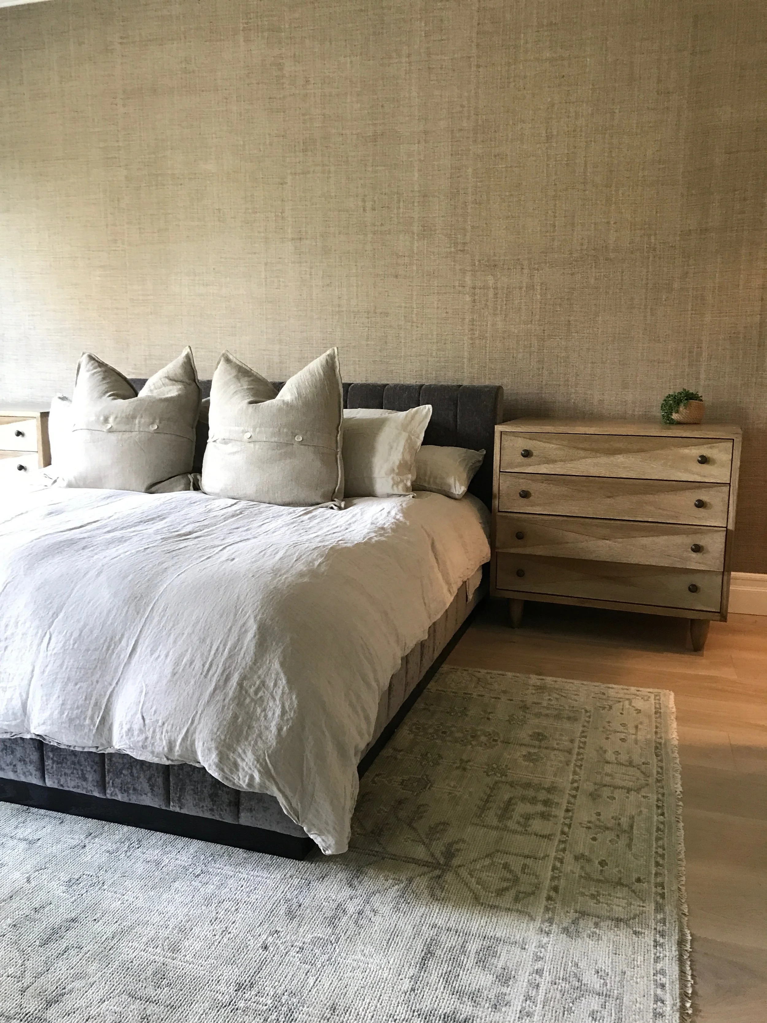 The San Vicente Project is a home remodel in Redding, California, blending soft neutral tones and textures with striking black natural stone and hardware. The design creates a harmonious, inviting atmosphere that seamlessly integrates intrinsic elements with refined style, complementing the surrounding landscape.